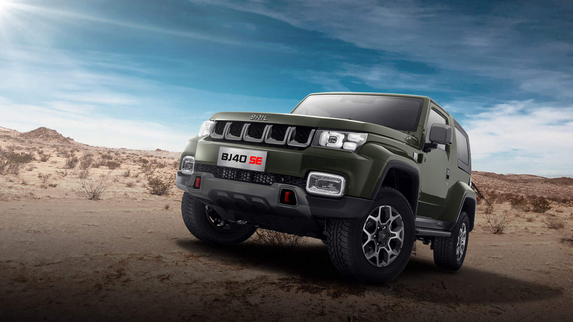 The BAIC BJ40 SE 2.0T 8AT Honor 2023 (Three‑Doors) is a rugged 4‑seat SUV with a 2.0 L turbo petrol engine, 8‑speed automatic transmission, full‑time 4WD, compact off‑road design, LED lighting, and modern comfort features.